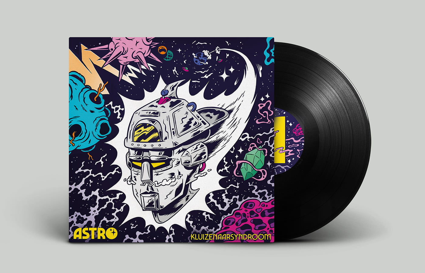 Astro nam contact met mij op omdat hij graag een cover design van mij voor zijn album ‘Kluizenaarsyndroom’ wilde. Een ontwerp die hij kon gebruiken voor zowel de digitale release, als de platenhoes voor de LP en merch.